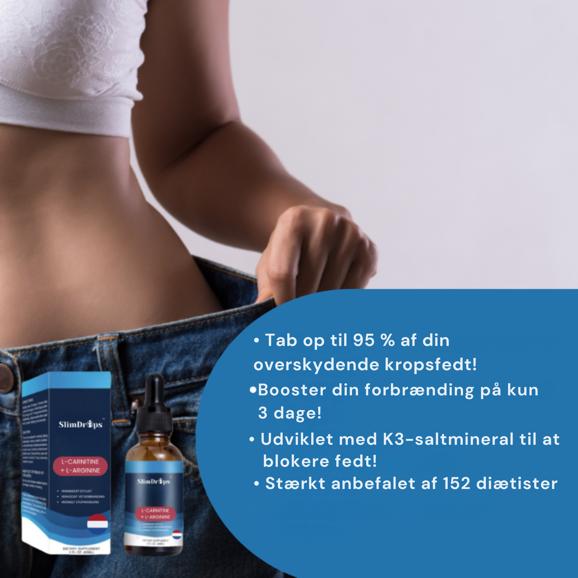 Med SlimDrops™ kæmper din krop naturligt mod overskydende fedt ved at reducere fedtlagring og fremskynde dit stofskifte.